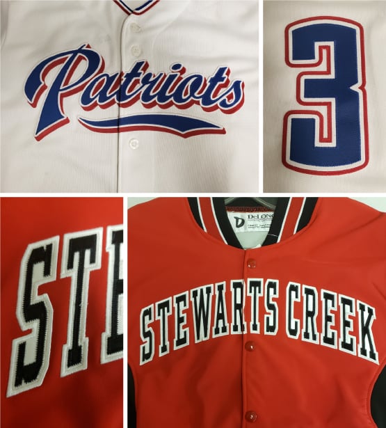 Tackle twill involves applying twill lettering onto a garment. The twill lettering is custom cut from polyester twill material into any letter, shape or design. It can be sewn onto almost any garment. The tackle twill is permanently attached to the garment using edge stitching, usually in a zig-zag or dotted pattern. This style has a classic scholastic look, ideal for sports jerseys, varsity jackets, greek organizations and more.